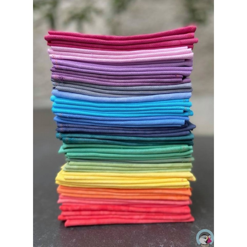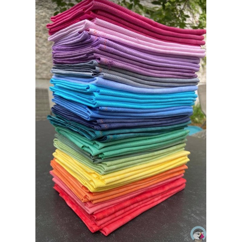 All the "Tom & Lily Toiles" stitching fabric is hand dyed by us using 100% natural Zweigart Linen fabric 32Count/12 fils, 36 Count/14 fils, 32 Count/12 fils Lyrex (sparkly), Eavenweave/Etamine and Aida 8. They are guaranteed colourfast and washed after the colouring process. However if you're used to washing your stitching work, we recommend rinsing the fabric in cold water, before starting to embroider. (Darker colours can bleed slightly ) Please note that the colours can differ from one computer screen to another. The colours will be followed, but can vary from one colour bath to another.